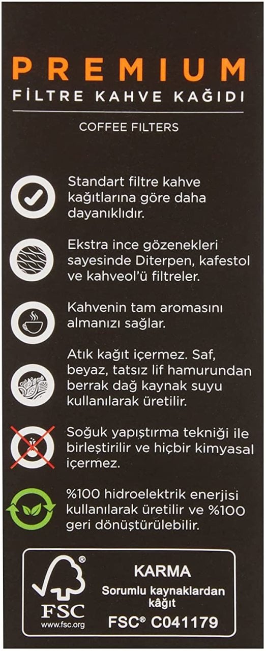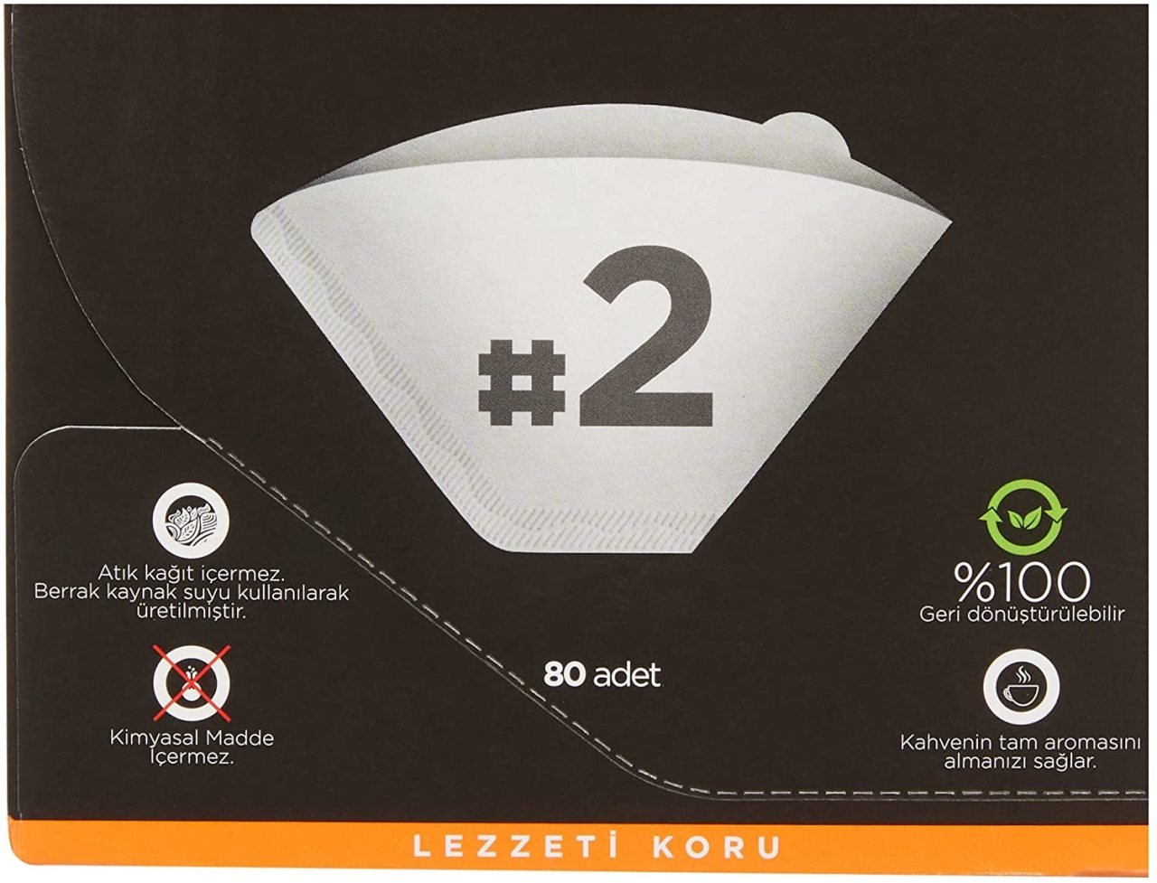 - 2 numara ebatındaki filtre kahve makineleri ve elle demleme ekipmanları için uygundur.