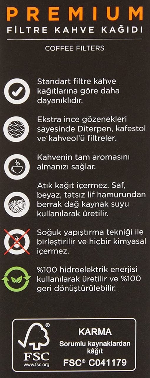 - Standart filtre kahve kağıtlarına göre daha dayanıklıdır.