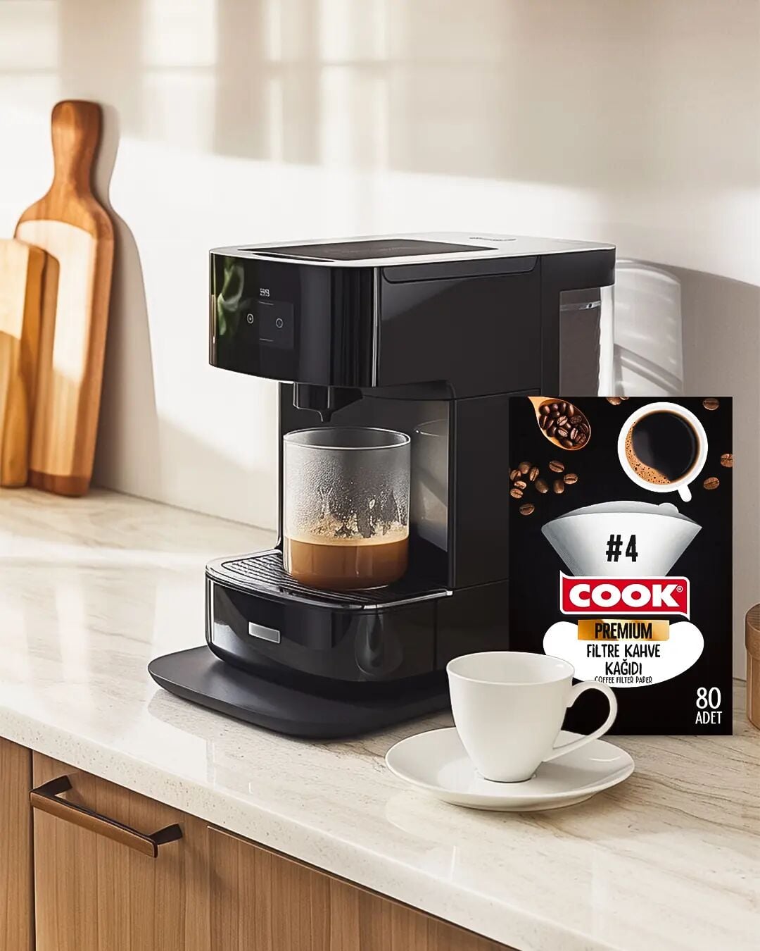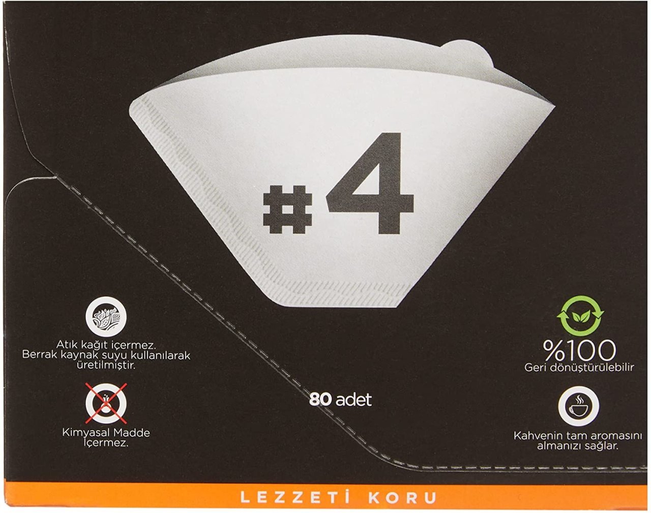- 4 numara ebatındaki filtre kahve makineleri ve elle demleme ekipmanları için uygundur.