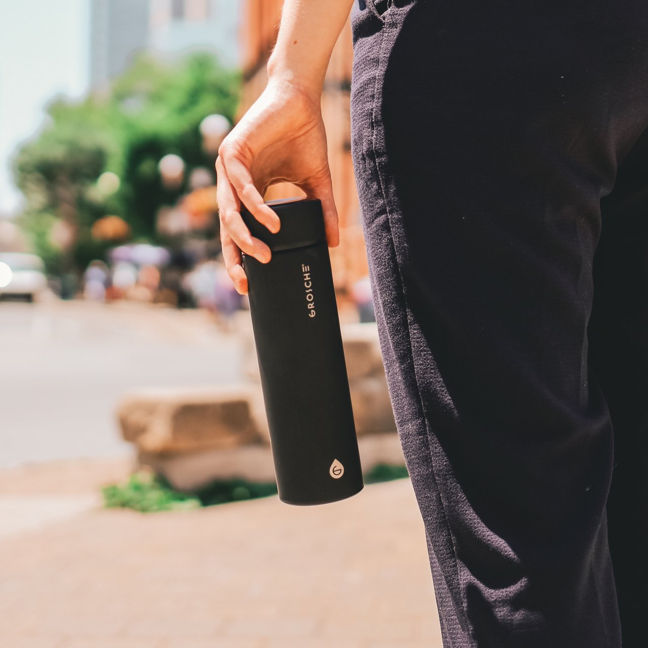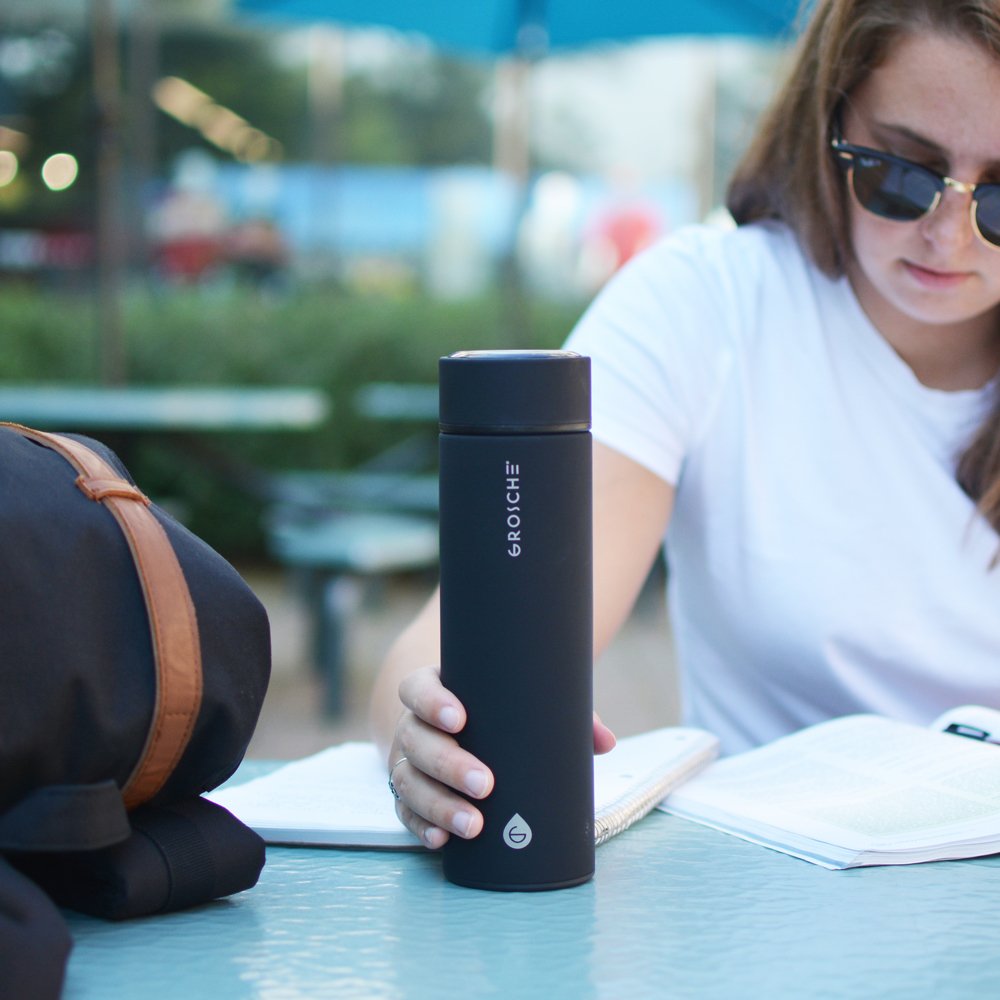 Grosche Chicago Çift Duvarlı Demleme Hazneli Çelik Termos Siyah 450 ml