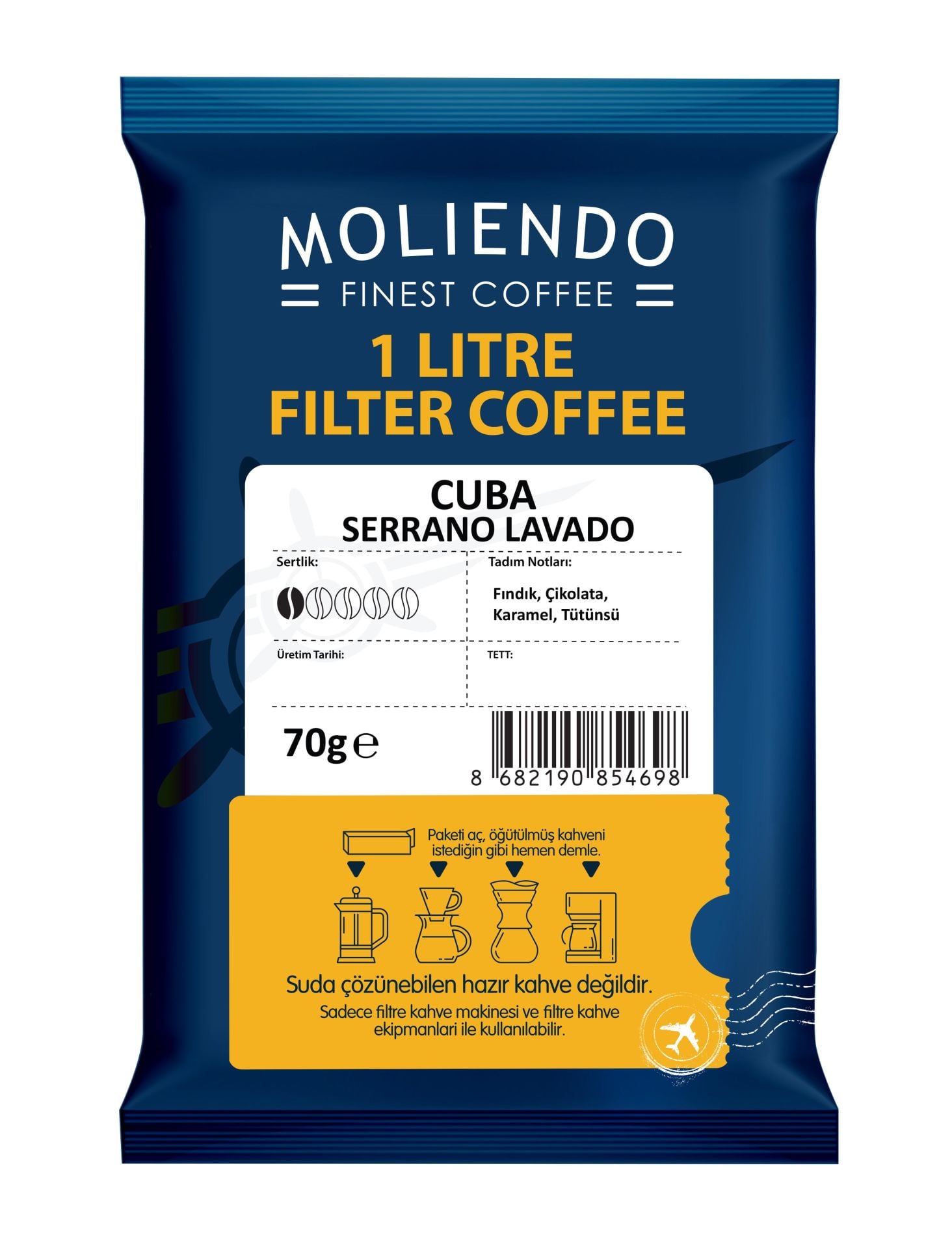 Moliendo 1 Litre Cuba Serrano Filtre Kahve 70 g