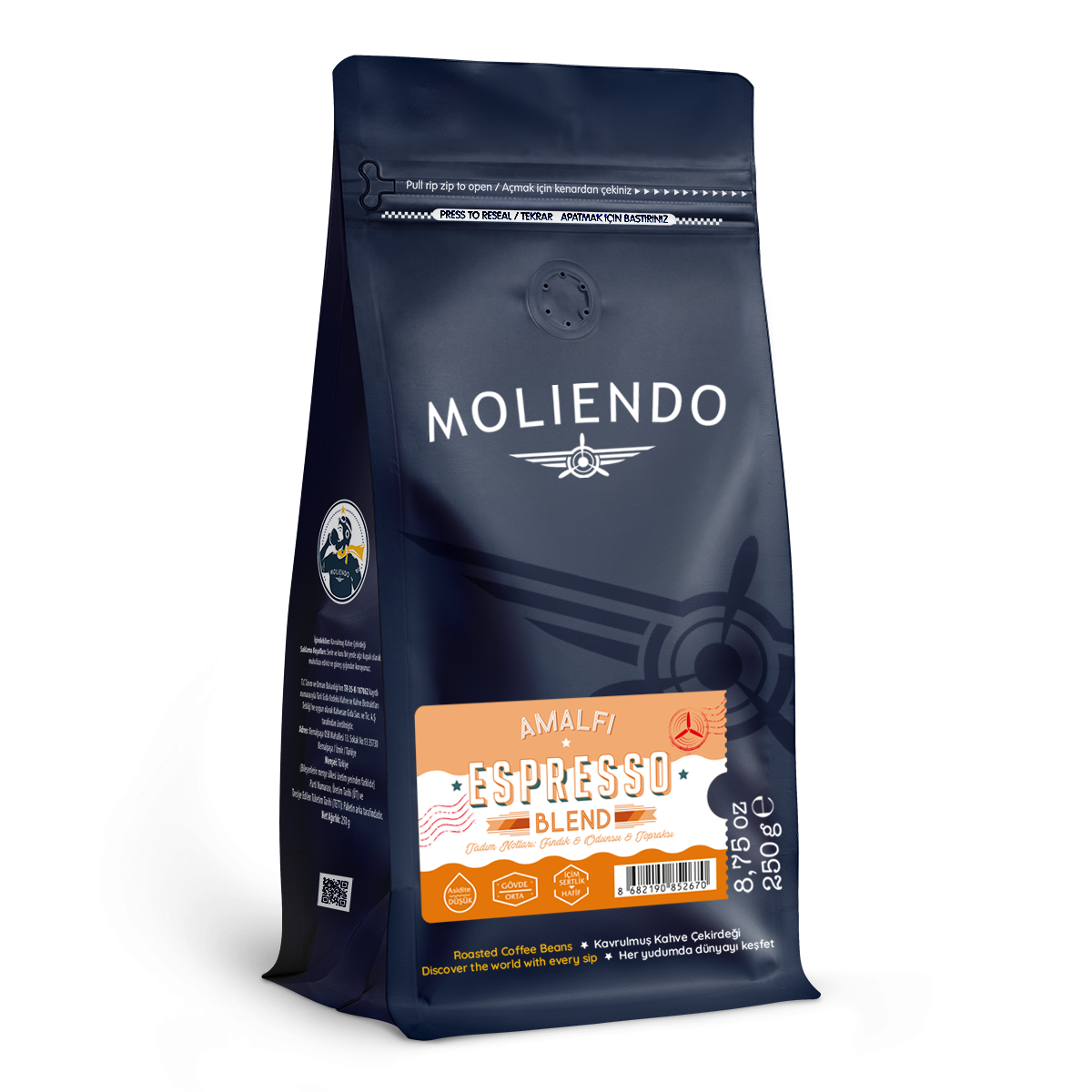 Bu kahvemizde İtalya’nın doğa harikalarından biri olan Amalfi kasabasından ilham aldık. Dağların denize dik uzandığı Amalfi kıyılarında bir uçurumun kenarına inşa edilmiş çiçekli balkonuyla bembeyaz bir ev, hemen ilerisinde kırmızı kiremit damlarıyla bir mahalle ve bu dağların arasına gizlenmiş birdenbire karşınıza çıkan sürpriz küçük koylar dikkat çeker. Amalfi blendde ise sert ve kendini belli eden bir çikolata tadı, belirgin gövde hemen peşinde kırmızı ve çekirdekli meyvelerden bir tadım ve yudum esnasında sürpriz şekilde karşınıza çıkan uzak doğunun vanilya ve küçük mistik tatları yer alır.