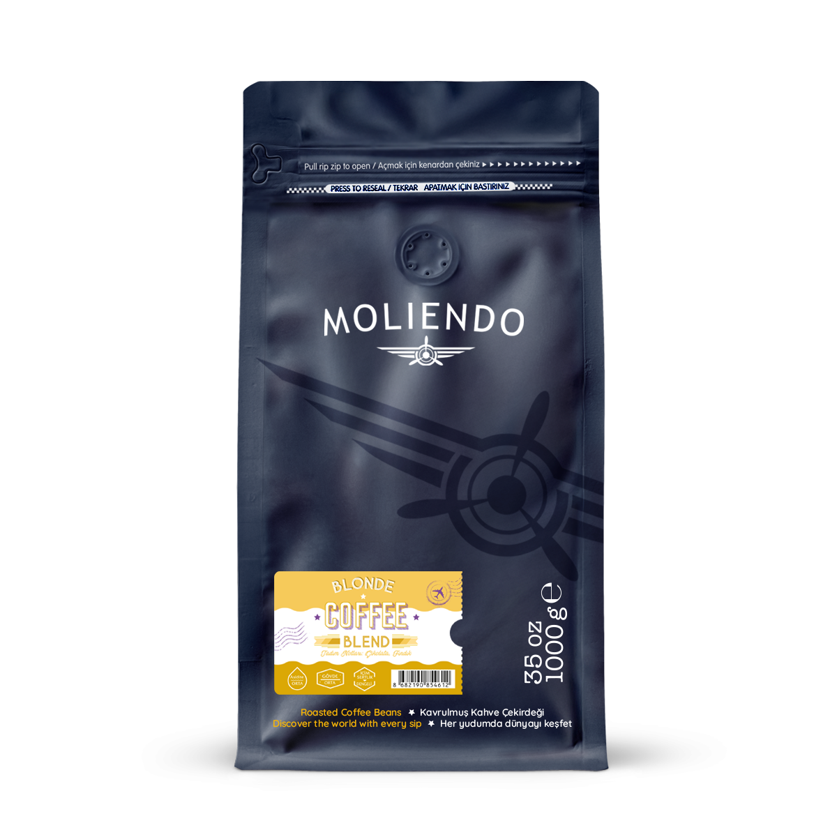 Moliend Blond Coffee Blend’de biz Robusta çekirdeği kullanmadık. %100 Arabica çekirdeklerinden oluşturduğumuz bu harmana diğer harmanlarımızdan daha farklı bir bakış açısıyla yaklaştık. Cafe’lerde içtiğiniz kahveyi evde de hazırladığınızda benzer tatları alabilmeniz için kavurma derecemizi biraz daha dengeledik. Özellikle espresso ile hazırlanan sütlü içeceklerde yumuşak içimi sağlasın ama kahve belirginliğini de korusun istedik.