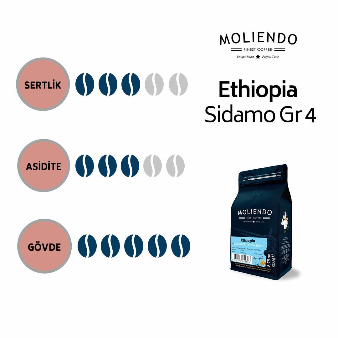 Ethiopia Sidamo Gr 4 birçok İtalyan espresso markası tarafından kullanılan bir çekirdek. Espresso seviyorsanız mutlaka denemelisiniz, öte yandan filtre kahve olarak da dikkat çeken bir içimi var. Yüksek gövdeli kahvelerden genelde beklenmeyen pürüzsüz bitiş tadı aklınızda yer edecektir.