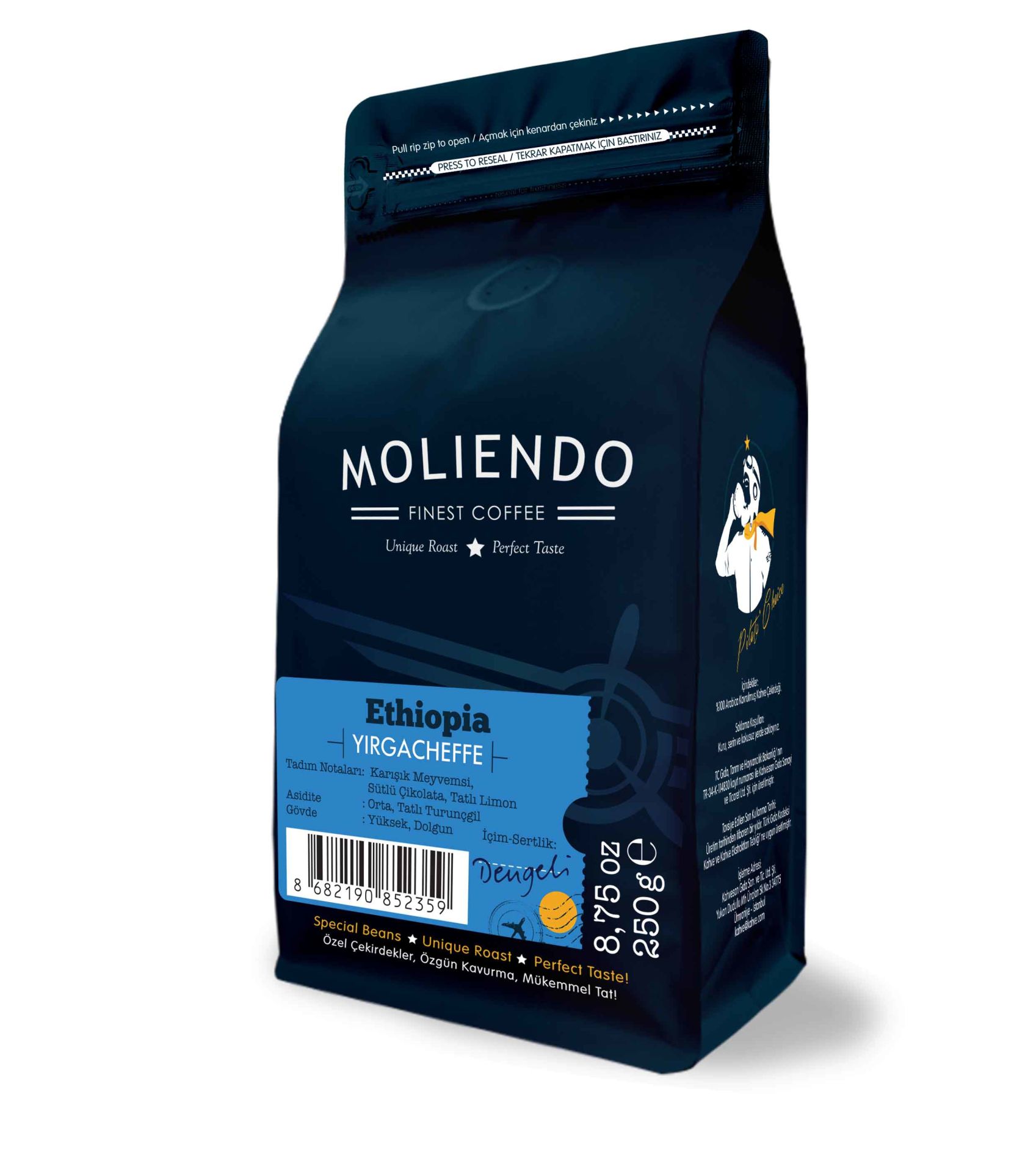 Etiyopya Yirgacheffe bölgesinde yetiştirilen kahveler dünyada kahve severlerin kalplerinde ayrı bir yere koyduğu, her 3-4 farklı bölge/tip denedikten sonra dayanamayıp tekrar içmek istediği bir kahve.