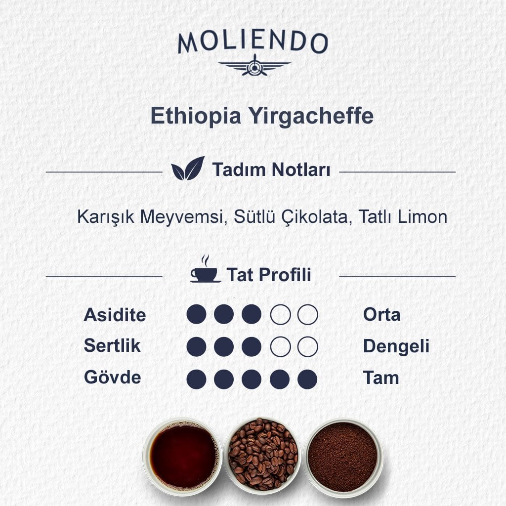 Etiyopya Yirgacheffe bölgesinde yetiştirilen kahveler dünyada kahve severlerin kalplerinde ayrı bir yere koyduğu, her 3-4 farklı bölge/tip denedikten sonra dayanamayıp tekrar içmek istediği bir kahve.