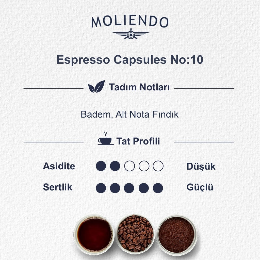Sert, yoğun ve belirgin karakterli espresso seven kahve tutkunları için ideal bir seçimdir. Kahvesinin damakta uzun süre kalmasını isteyen, dolgun gövdeli ve güçlü aromaları tercih edenler No:10’un 10/10 yoğunluk seviyesinden memnun kalacaktır. Özellikle sabahları güçlü bir başlangıç yapmak ya da gün içinde net bir enerji etkisi arayanlar için doğru tercih olacaktır.