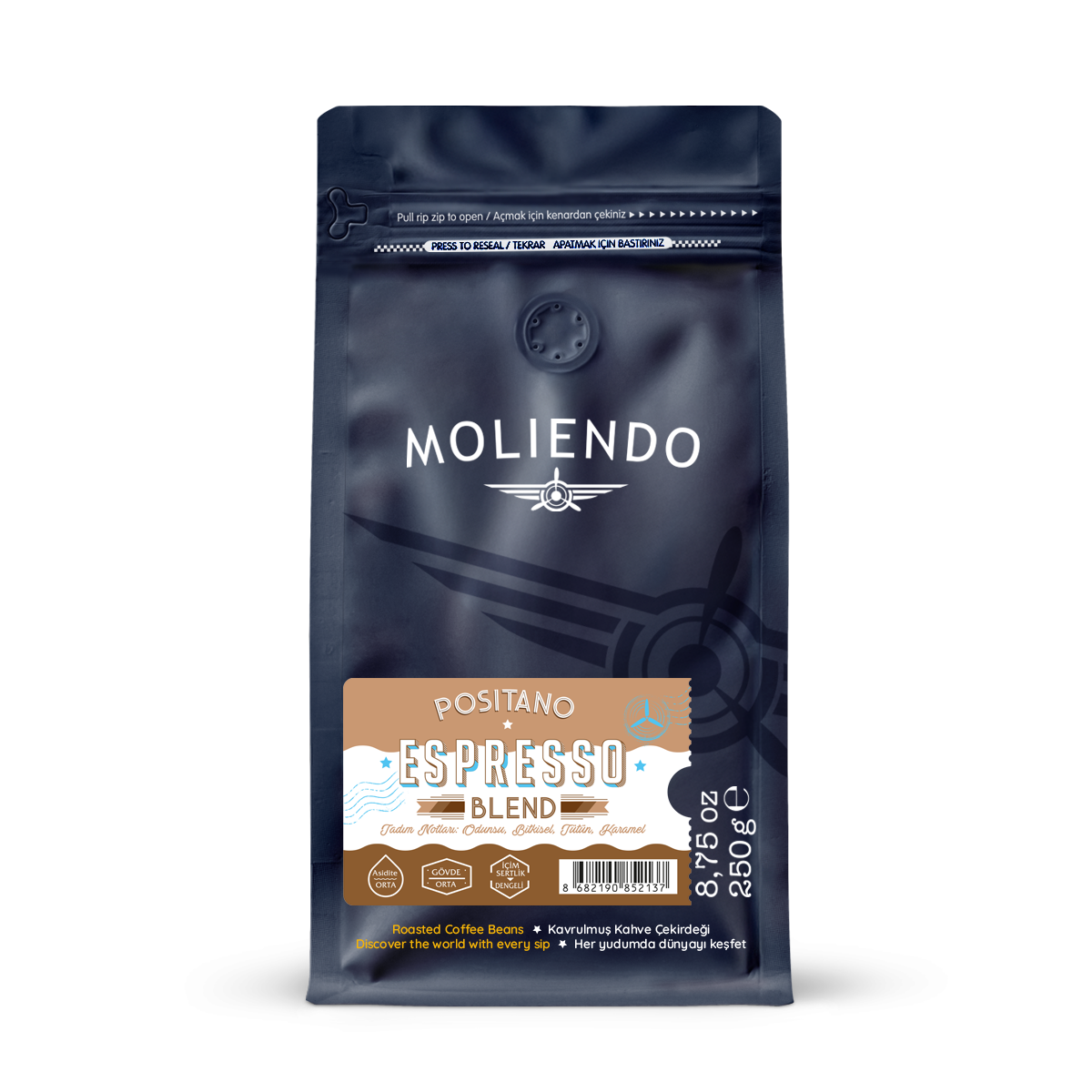 Tam otomatik ve manuel espresso makinelerinde rahatlıkla kullanabileceğiniz bu blend’imiz, klasik sert ve acı espresso algısını yumuşatarak yıkacaktır. Kararında dengelenen asidite hem sade içimde güzel bir his veriyor hem de sütlü içeceklerde extra yumuşaklık sağlıyor. Sadece espresso olarak değil filtre kahve olarak da tüketebileceğiniz bir harman. Single Origin bir espresso’ya göre bir kademe daha kalın öğütmenizi öneririz.