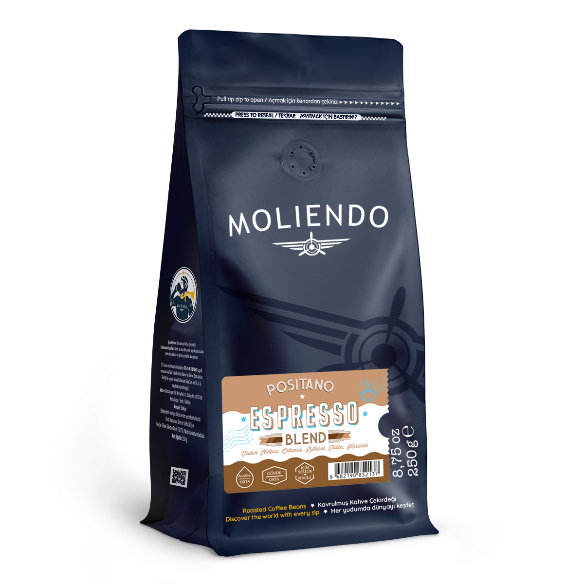 Bu kahveyi oluştururken günün her saatinde içebileceğiniz ofiste, işletmelerde, pastanelerde kullanıma uygun olduğu gibi evinizde de tüketebileceğiniz yumuşak içimli hem sade hem de sütle rahatlıkla tüketilebilen, klasikleşmiş espresso tatlarının dışında bir kahve hedefledik. Bunun için de farklı tadım notlarına sahip bölgelerden bir harman oluşturduk. Latin Amerika’nın karakteristik ülkeleri Guatemala ve Brezilya’nın yanı sıra Uzak Doğu ülkelerinin mistik vanilya ağırlıklı tatlarını ve Afrika’nın çiçeksi narenciye notalarını bu blende dahil ettik.